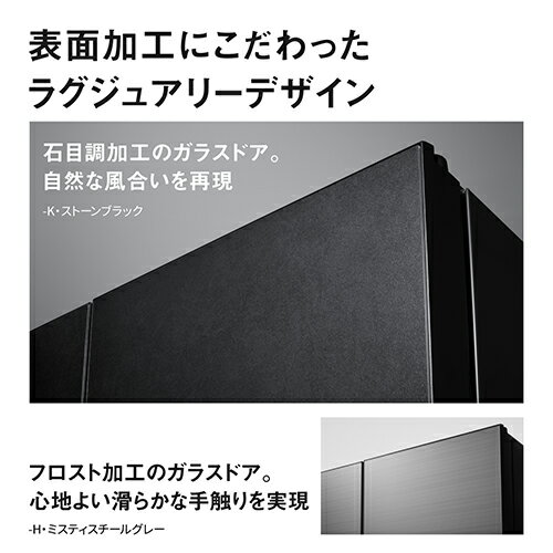 | その他の特長 | トップユニット方式 奥まで見えるフルオープン ローウエストライン AIエコナビ(おやすみ・かしこく・しらべる) IoTひとセンサー 庫外湿度センサー 全室ナノイーX(クリーンパトロール) Agバイオ抗菌脱臭 無線LAN接続 専用アプリ対応 デマンドレスポンス対応 |