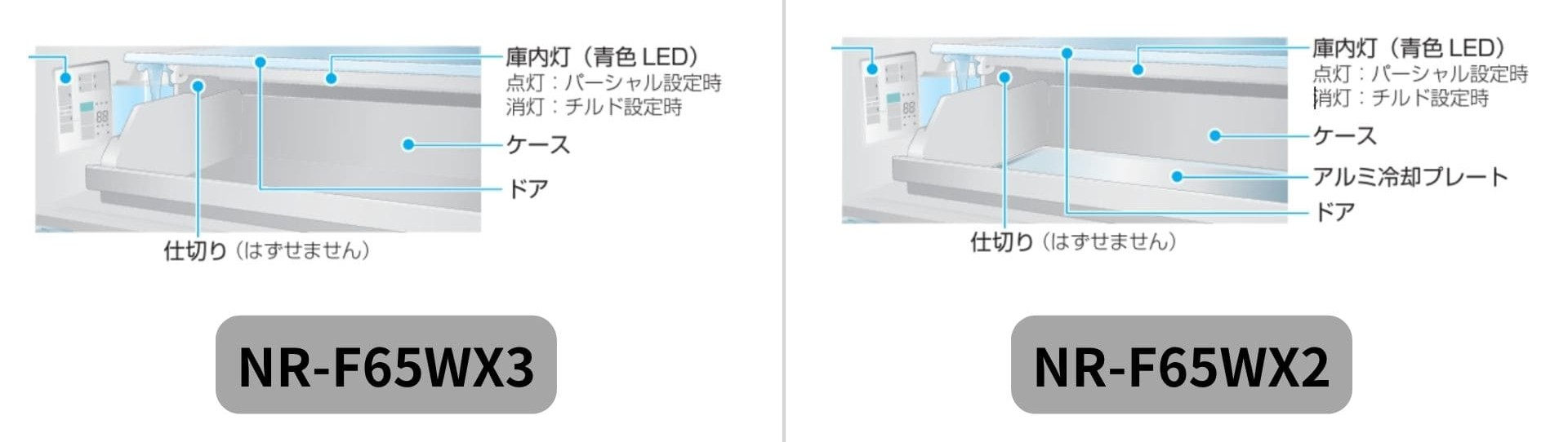 NR-F65WX3とNR-F65WX2の違いを比較 パナソニック冷凍冷蔵庫