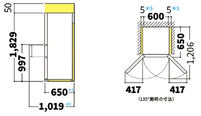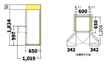 ただ、ドアを全開したときのスペースは違っていて、SJ-XW41Rは342cm、SJ-XW41Pは417cm。